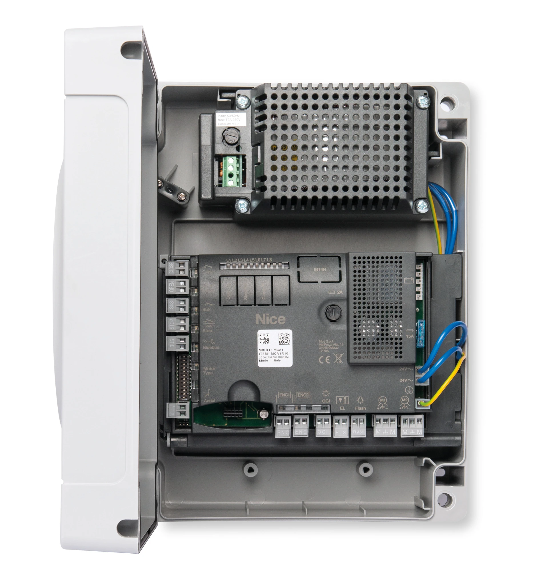 Mit Nice-BlueBUS-Technik, kompatibel mit Solemyo- Solarenergieversorgung (MC824H, MC824L) und dem Opera-System für die Steuerung, Programmierung und Diagnose von Antrieben auch im Remote-Modus.