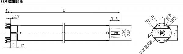 Era M Rohrmotor, 8 Nm, 17 U/Min, Ø 45mm, Zugkraft 15 Kg