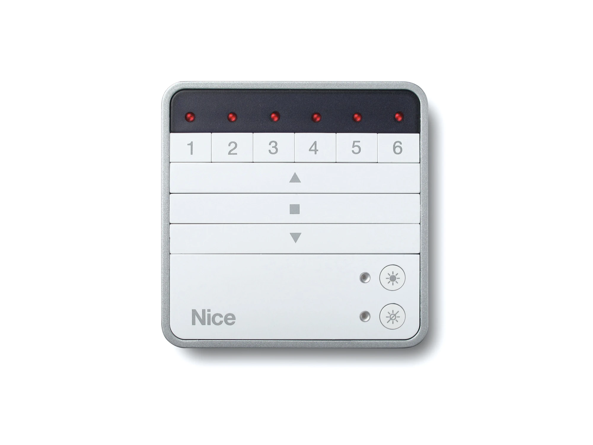 Handsender zur Wandbefestigung für die Steuerung von Sicht- / Sonnenschutzsystemen.